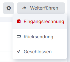 Wenn Sie alle Informationen zu Ihrem Wareneingang eingetragen haben, so können Sie den Beleg per "**Weiterführen zu**" zu einer **Eingangsrechnung** oder zu einer **Rücksendung** weiterführen.