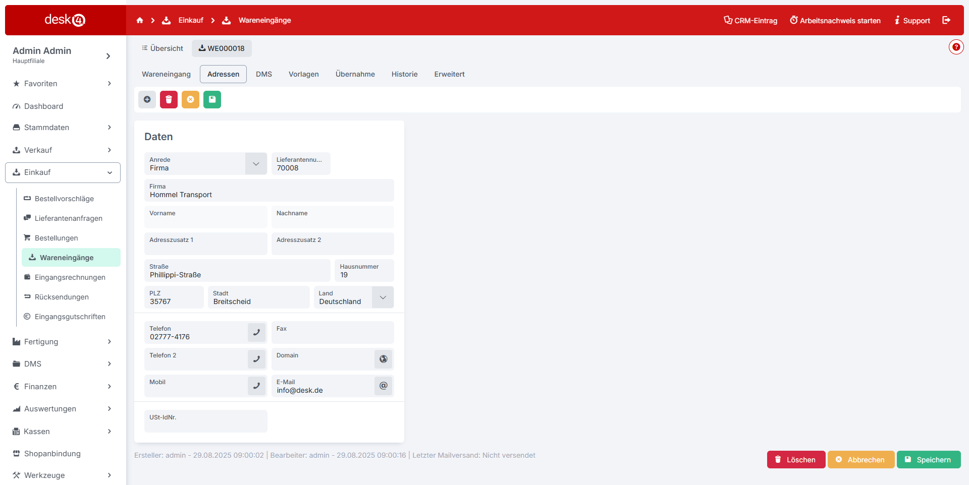 {% hint style="warning" %} <mark style="color:red;">Mehr über</mark> <mark style="color:red;"></mark><mark style="color:red;">**Lieferanten**</mark> <mark style="color:red;"></mark><mark style="color:red;">erfahren Sie</mark> [***hier***](https://docs.desk4.de/stammdaten/lieferanten)***.***