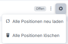 Über das **Zahnradmenü** können Sie alle Positionen neu laden oder alle Positionen löschen.