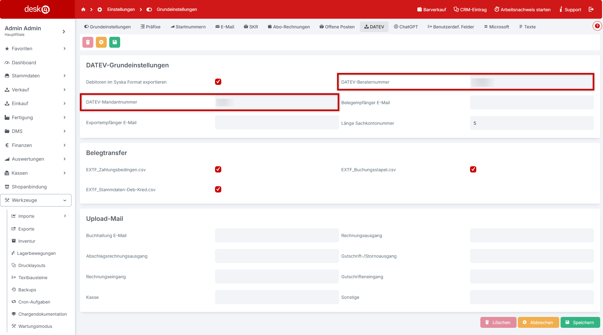 **Weitere Informationen zur "Datev Unternehmen Online"-Schnittstelle finden Sie** [**hier**](https://docs.desk4.de/finanzen/finanzexport)**.**&#x20;