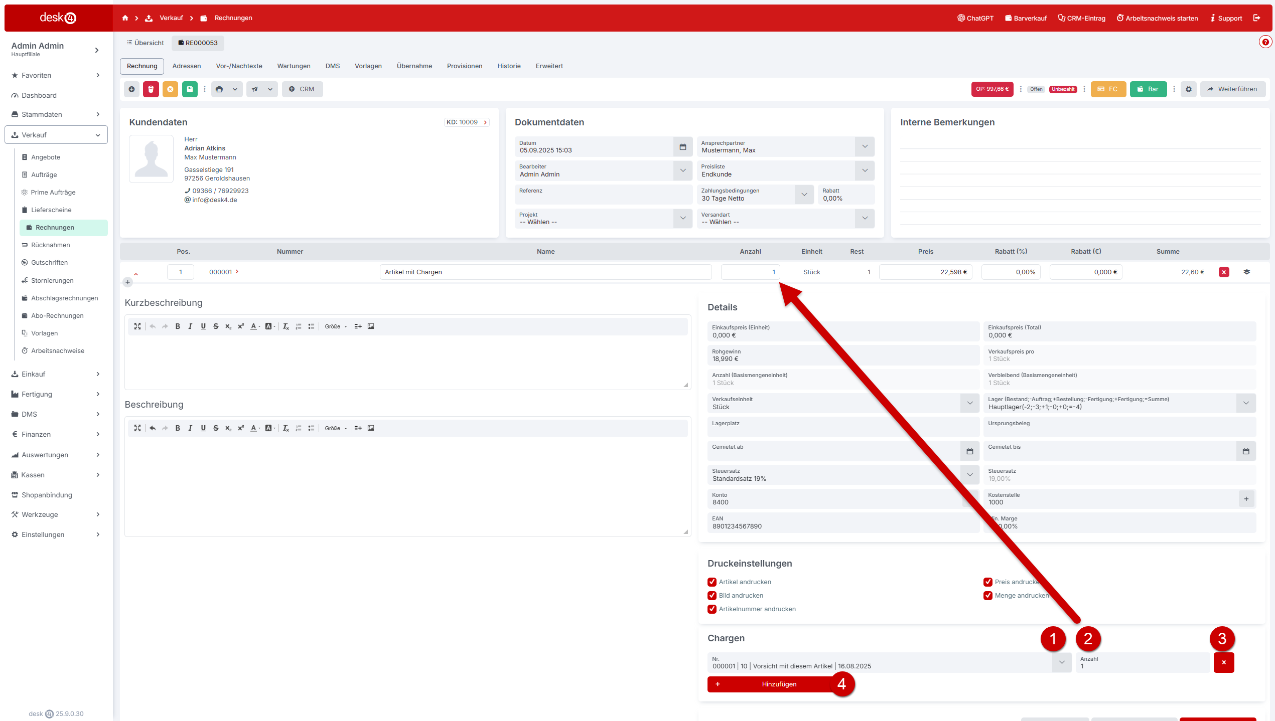 4. Sie können weitere Chargen für die Position hinzufügen.&#x20;