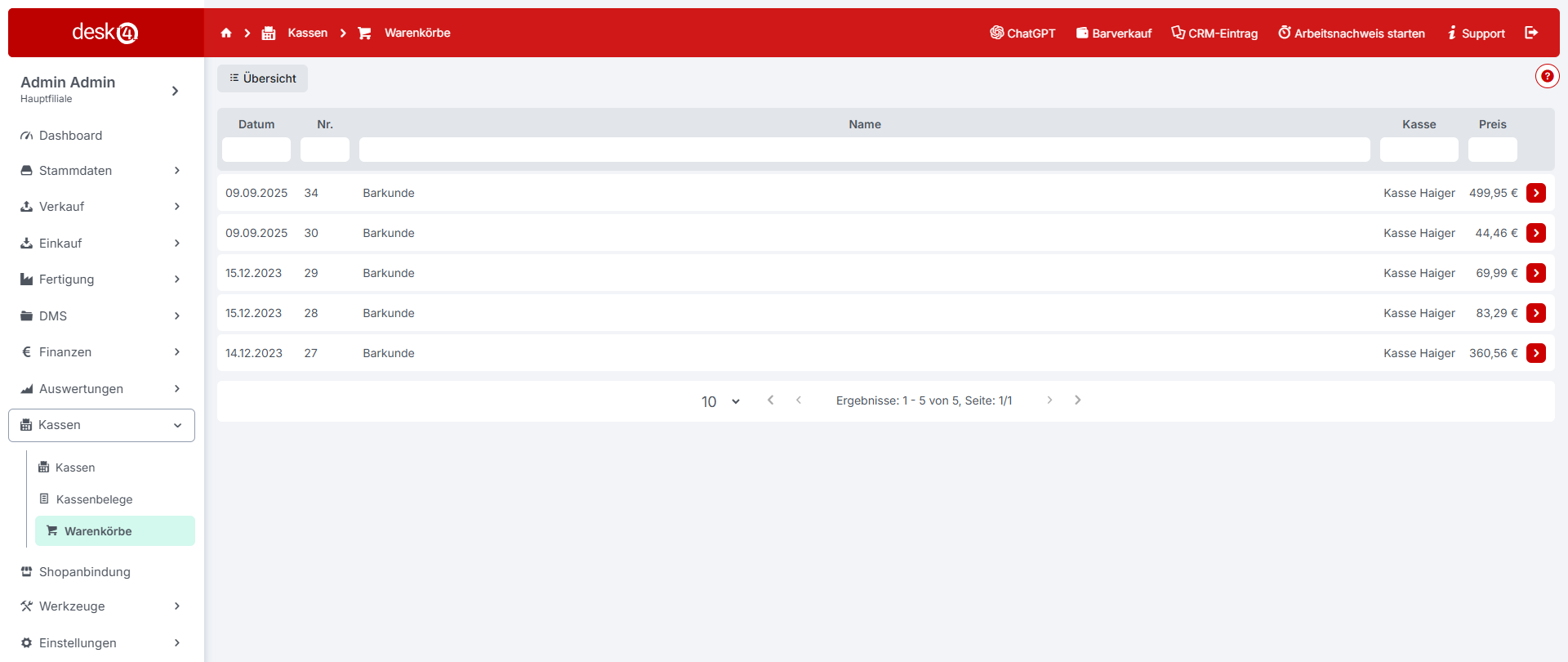 Die Warenkörbe selbst lassen sich wie gewohnt durch Anklicken öffnen und in der normalen Beleg-Ansicht von desk4 ansehen.&#x20;